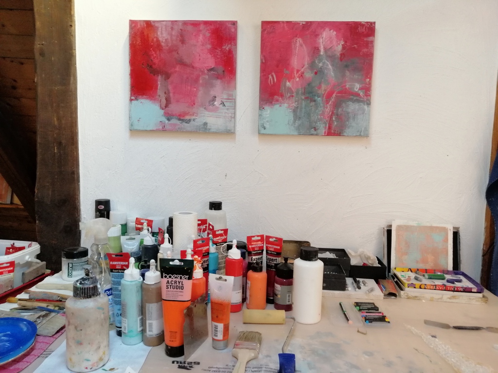 Freischaffende Künstlerin, künstlerische Tätigkeit über 30 Jahre intensive Auseinandersetzung abstrakter Ausdrucksform in der Malerei